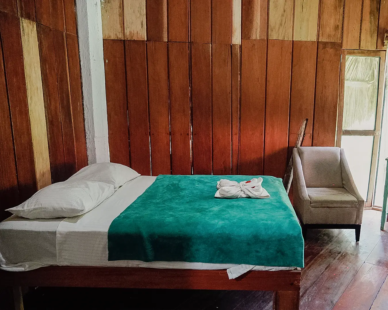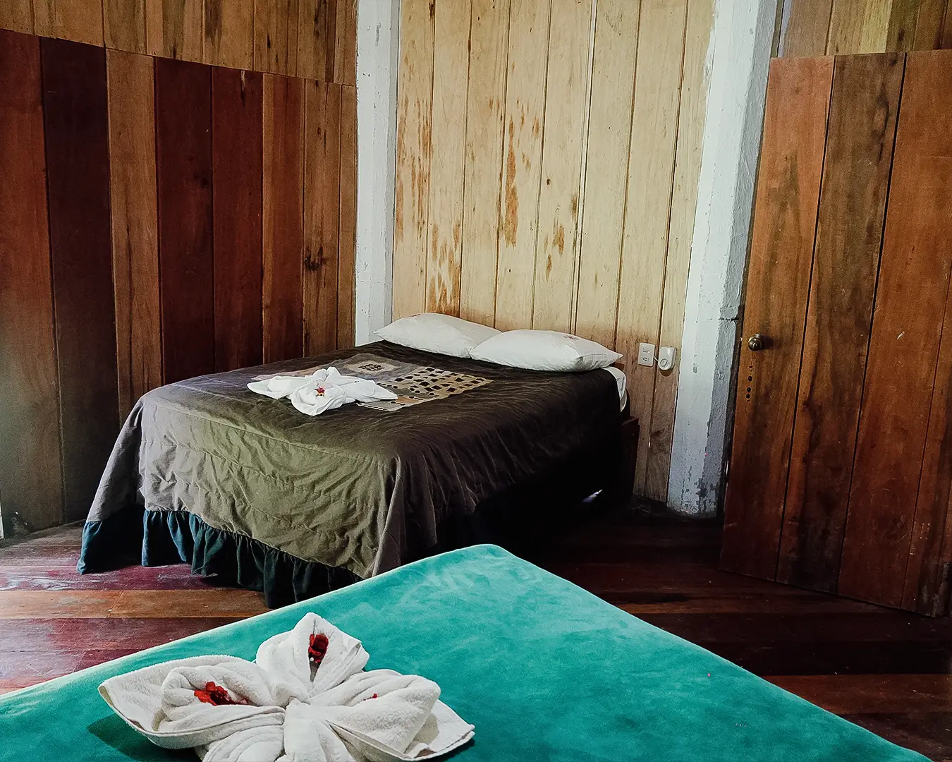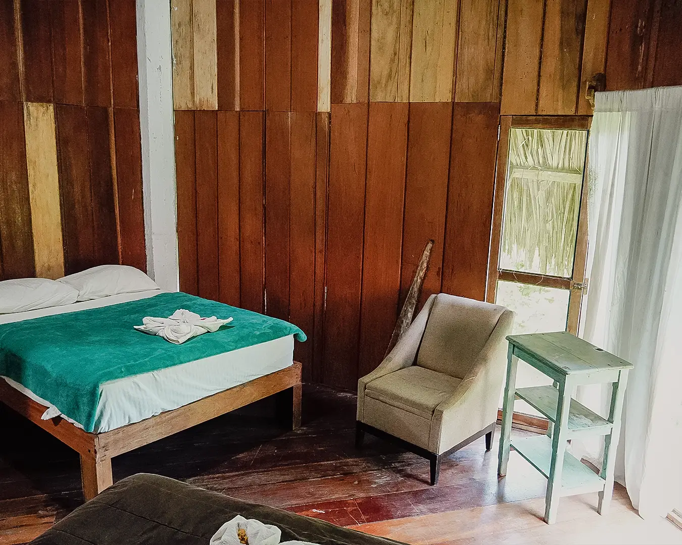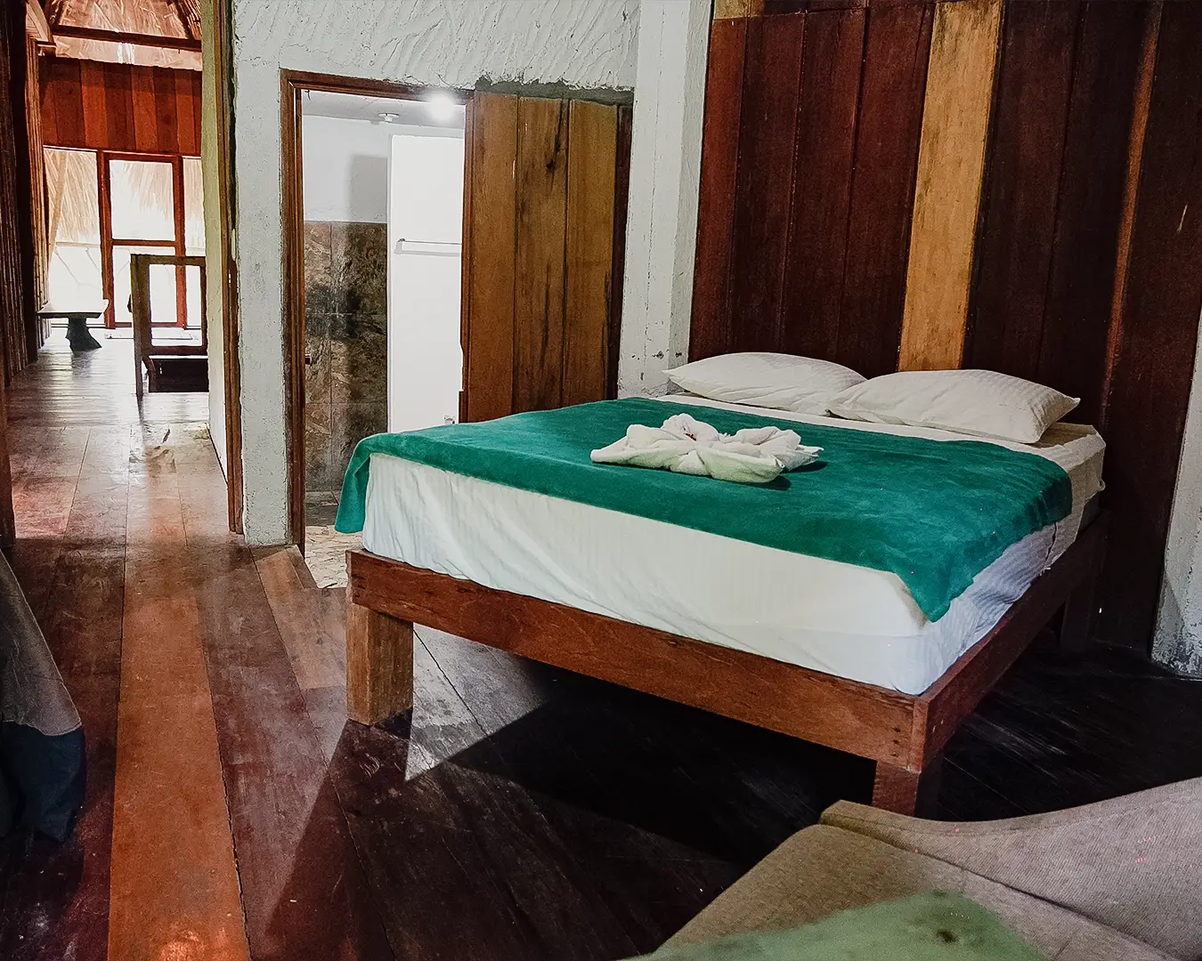 Disfruta de una escapada sostenible y romántica en nuestra Habitación Doble, diseñada para ofrecerte tranquilidad y conexión con la naturaleza. Con vistas panorámicas a las montañas y el sonido relajante de la selva, este espacio es perfecto para parejas o viajeros que buscan descanso en un entorno eco-friendly.